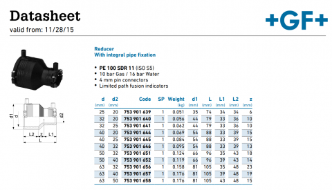 Reductie electrofuziune PE100 SDR 11 DN 40 x 25 +GF+